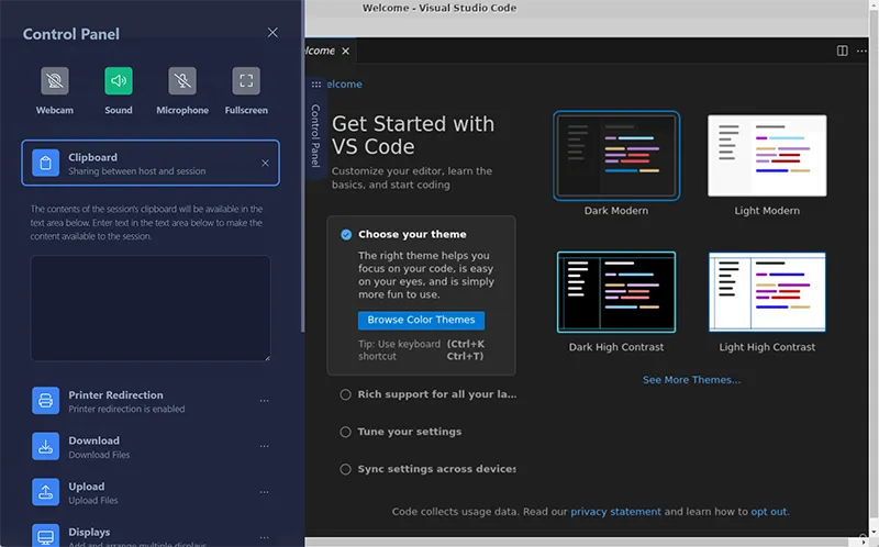 Browser-based access to a secure and customized work environment. Work from any location on any device.