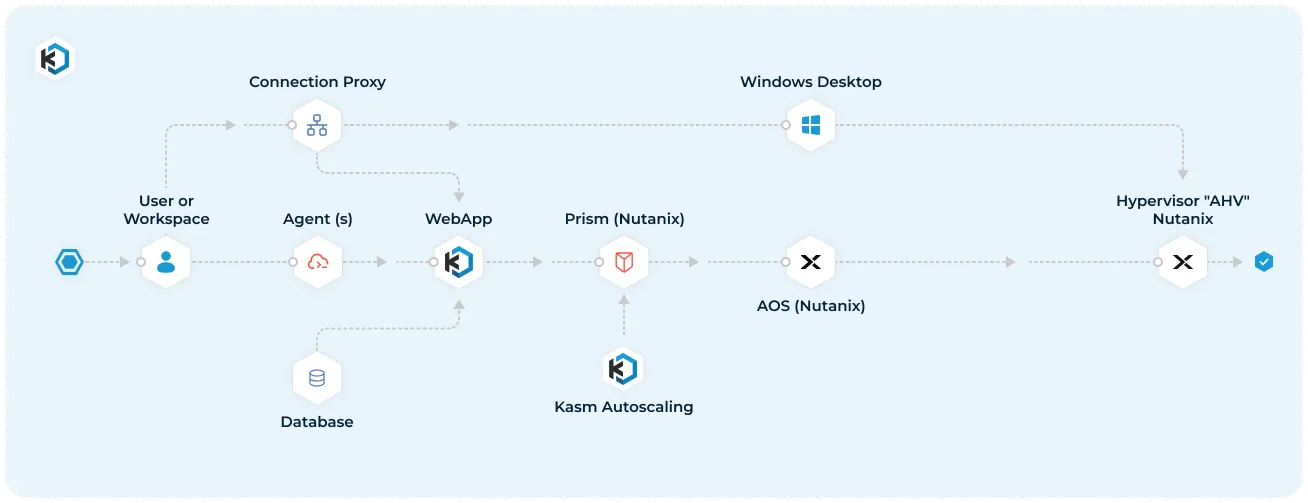 This integrated solution combines Kasm Workspaces, the modern platform for containerized desktop and application streaming, with the Nutanix Cloud Platform, a leader in hyperconverged infrastructure (HCI) and hybrid multicloud solutions. Together, they provide a high-performance, cost-effective, and secure platform for workspace modernization, transforming how enterprises deploy, manage, and scale virtual desktop environments.