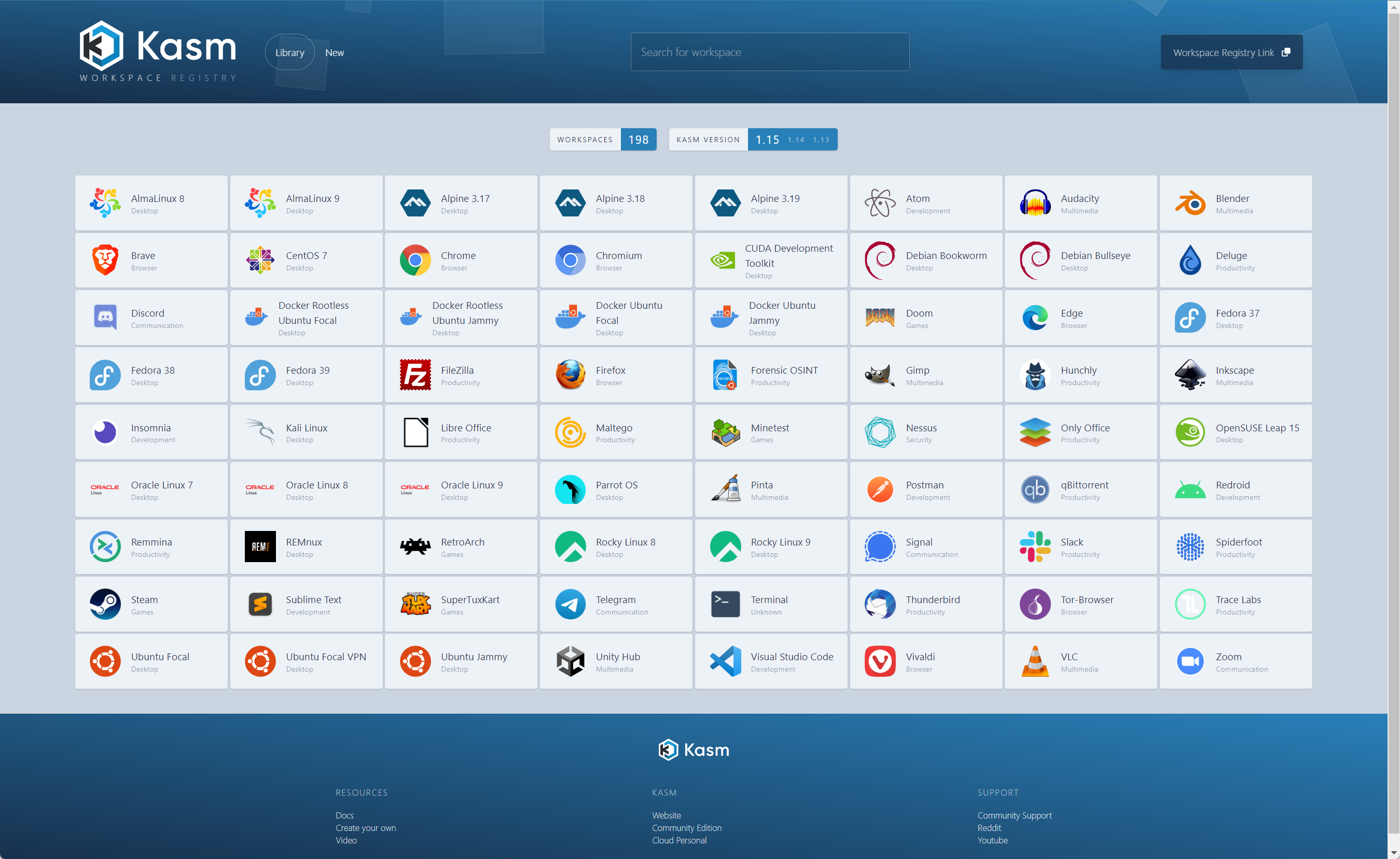 Kasm Technologies is committed to supporting the open-source community, so we have made all of our Workspaces images and the Workspaces container streaming technology available on Docker Hub and GitHub.