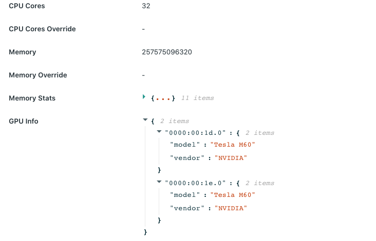 Administrators can view the details of an Agent and expand the GPU section to view more details.