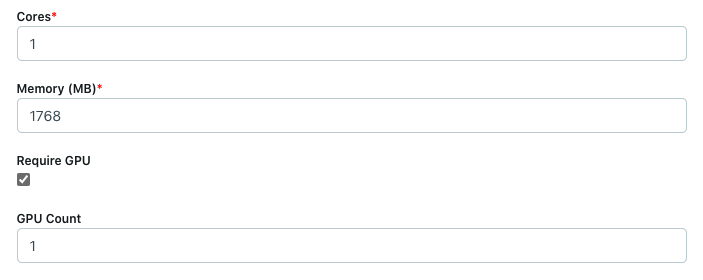 Workspaces images allow defining GPU requirements. Check the require GPU checkbox to ensure the image is only provisioned on agents with GPUs. Set the number of GPUs this container should be assigned, using a count of 0 will assign all GPUs. A requested session using this image will only be provisioned on an agent that has the number of selected GPUs or greater.