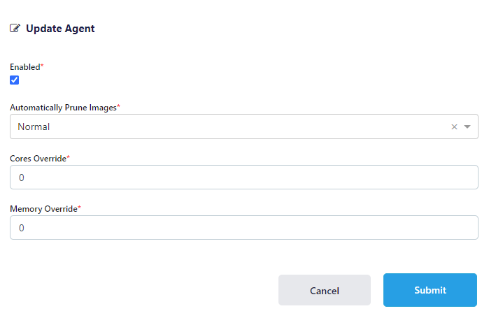 Agent settings may be configured from the Kasm UI by selecting Agents -> Edit (Pencil Icon)