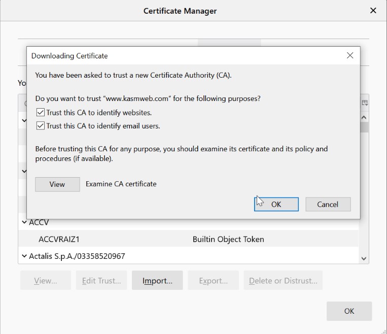 Download myCA.der from /srv/kasm_squid/ssl_cert/myCA.der