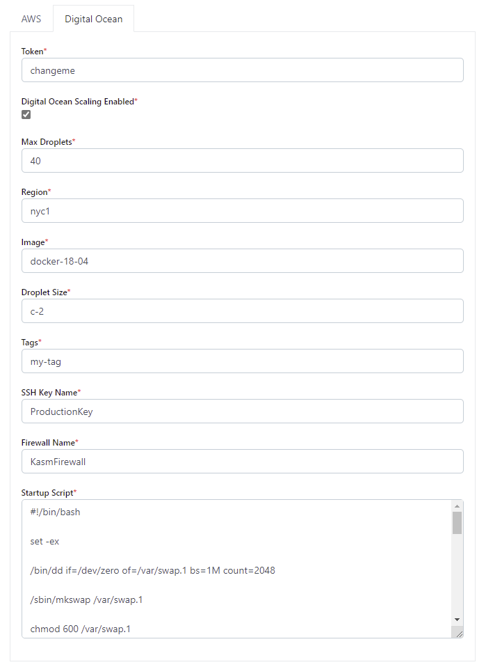 When checked the system will attempt to auto-provision Agents in Digital Ocean |