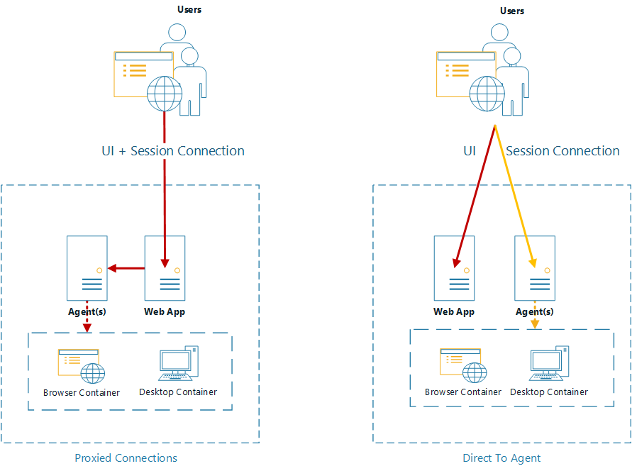 By default, connections to Kasm session are proxied through the WebApp role to the Agent role. This works well in most situations, and reduces complexity.