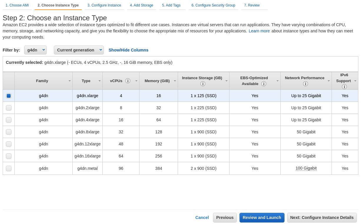 Select an instance type with a GPU, for example, g4dn.xlarge.