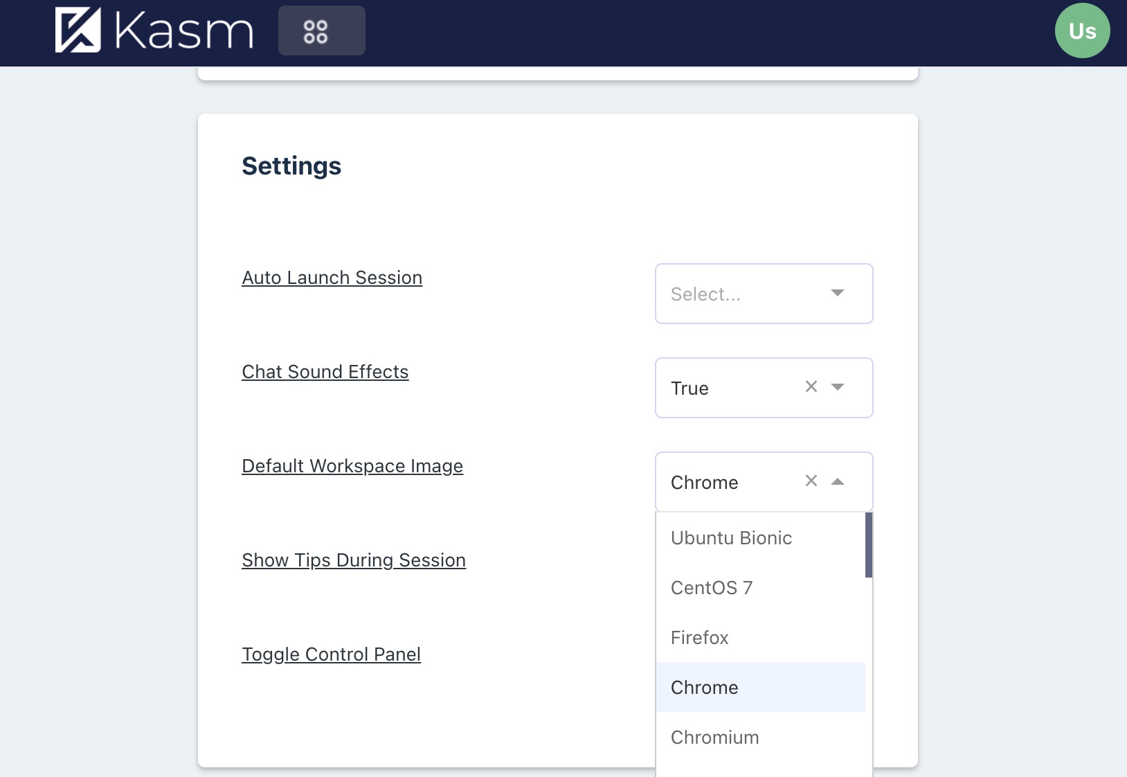 Scroll down and change the Default Workspace Image to the desired browser image.