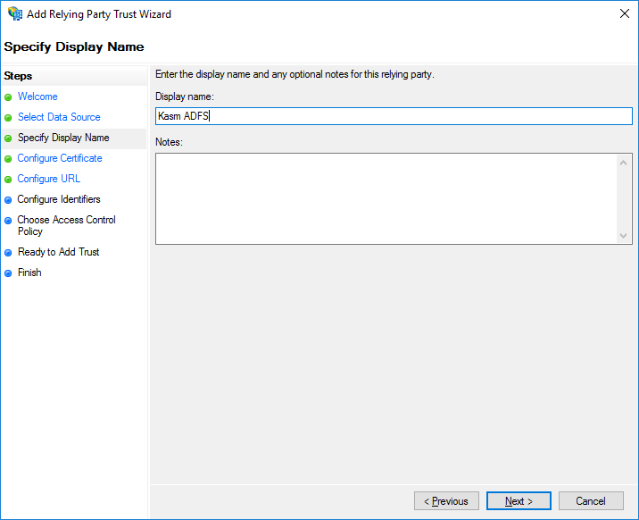 Enter a Display Name and select Next e.g (Kasm ADFS).