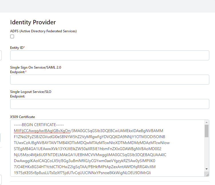 An XML metatdata file will be shown. Copy the highlighted sections into Identity Provider fields in the Kasm SAML Configurations started in the prior section. Once complete click Submit