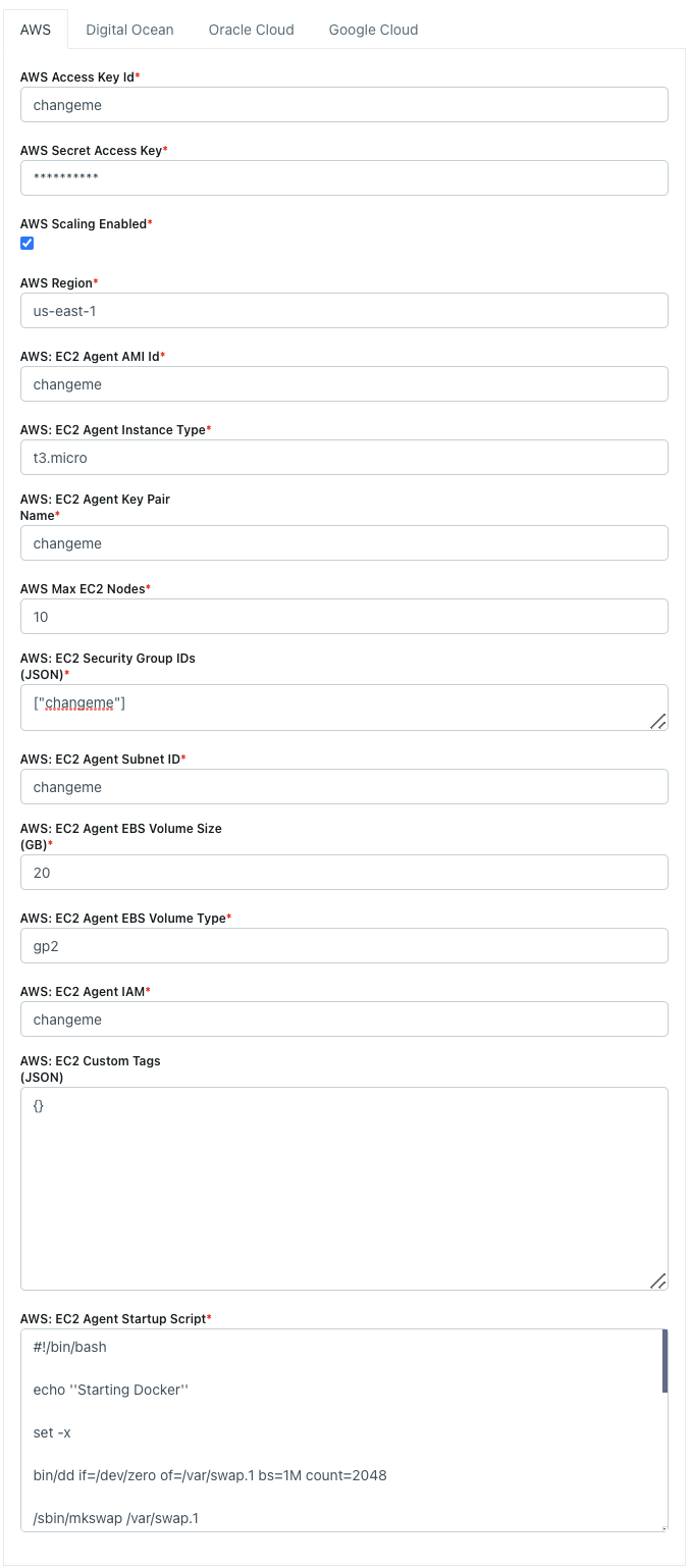 When an Agent is created, the compute resource (e.g AWS EC2 / Digital Ocean Droplet) will have a set amount of CPU and Ram as defined by the cloud provider’s instance type. This setting should typically be set to match the instance type but can be set to a preferred value. |