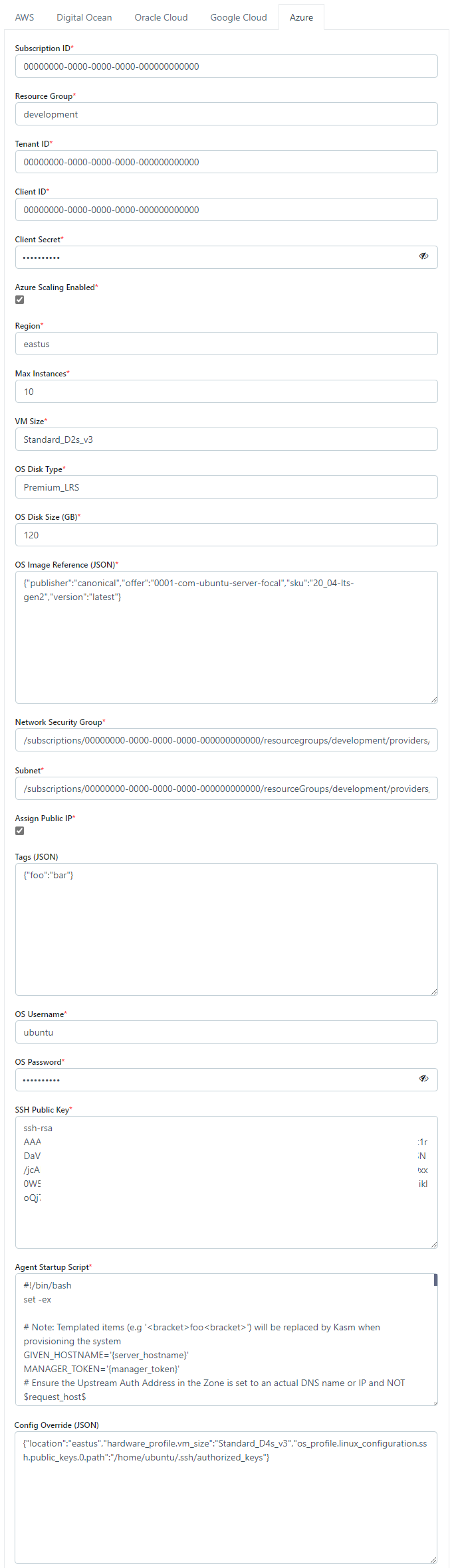 When checked the system will attempt to auto-provision Agents in Azure. |