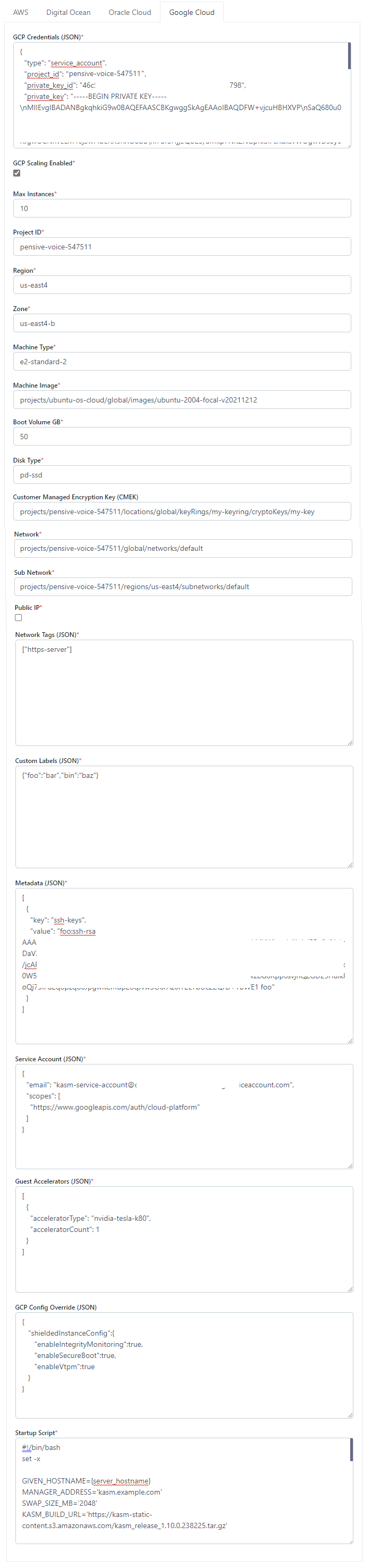Google Cloud (GCP) Settings¶