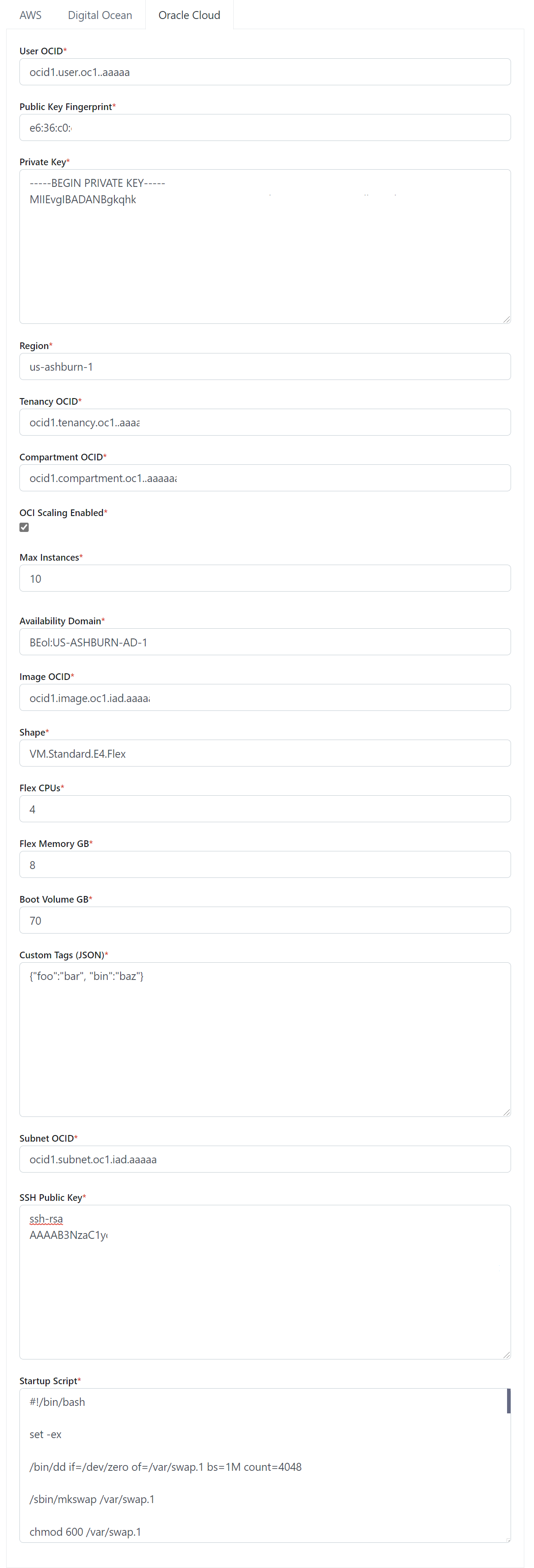 The OCID of the Subnet where the auto-scaled instances will be placed. (e.g ocid1.subnet.oc1.iad.xyz) |