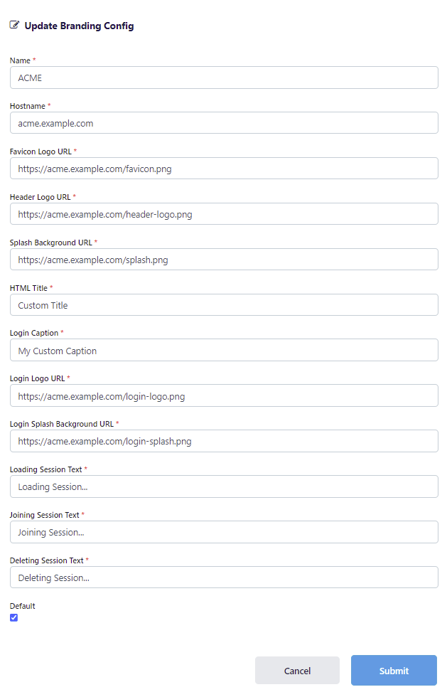 Kasm allows administrators to define multiple branding configurations that are chosen by the system based on the URL hostname the users accesses the system with.