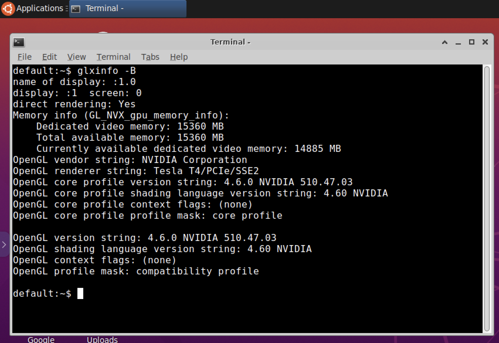 Verifying GPU Graphics Acceleration using glxinfo¶