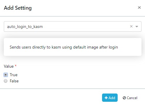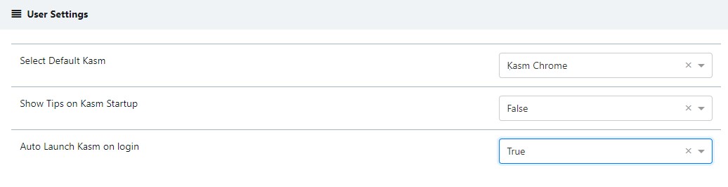 The Default Kasm can be configured as a Group Setting or as a User Setting