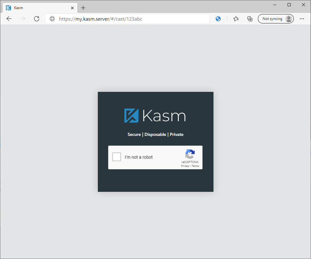 Test by navigating to the defined URL in a new browser window (e.g https://my.kasm.server/#/cast/123abc )