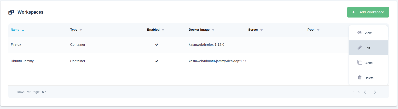 To add a persistent profile path to a Workspace from the administrator menu first click on Workspaces and edit your desired Workspace: