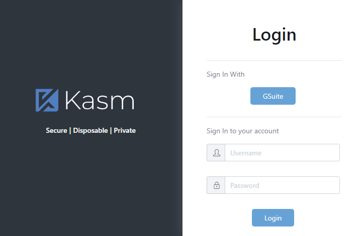 From another browser, login to Google. Click the Google Apps icon in the top right corner. Scroll down and click Kasm. You should be logged into the Kasm UI Dashboard.