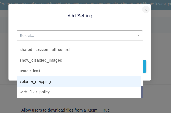 Volume Mappings may also be applied as a Group Setting . This may be useful if a certain set of users should have the mapping. When applied at the group level, all sessions created by members of this group will have the mapping applied.