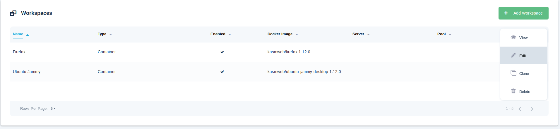 From the administrator dashboard click on Workspaces and select a Workspace to edit: