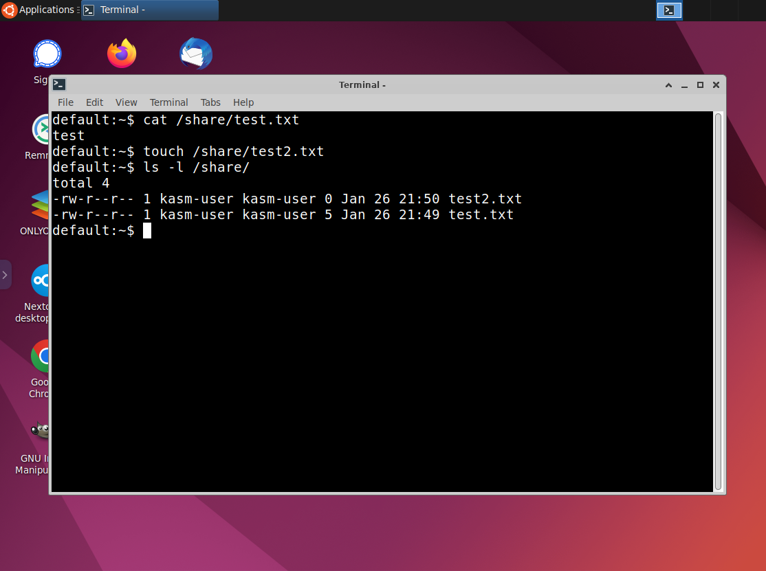 In this guide we will configure a folder on the host /mnt/kasm_user_share to be mapped inside the Kasm Desktop