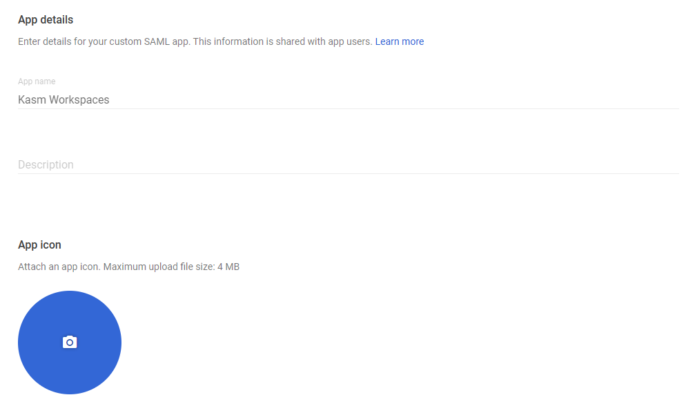 Enter an App name (e.g Kasm Workspaces) then select Continue.