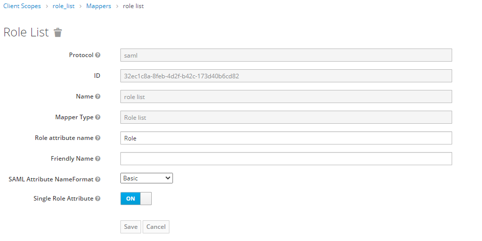 Set Single Role Attribute to On, then click Save.
