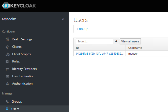 Select Users from the Keycloak menu, then click the ID next to the desired user.