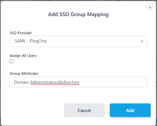 PingOne is not set up to pass along the user’s group membership during the SAML assertion. These groups can be mapped to groups within the Kasm Application. In the previous step we gave application login permissions to both the Domain Administrators@directory and Users@directory groups in PingOne. The following steps will now map the PingOne Domain Administrators@directory group to the Administrators group in Kasm.
