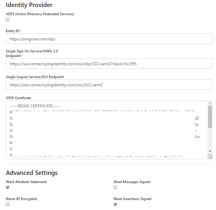 md:SingleSignOnService Binding="urn:oasis:names:tc:SAML:2.0:bindings:HTTP-Redirectproperty. This will be used as the Single Sign On Service property in the next section.
