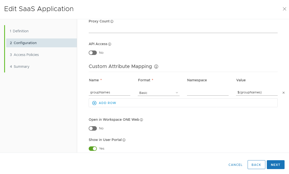In the prior steps, Workspace One was configured to pass along the group names the user is a member of in the SAML assertion.