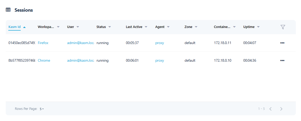 Administrators can view the active sessions by visiting the Sessions page from the Admin panel.