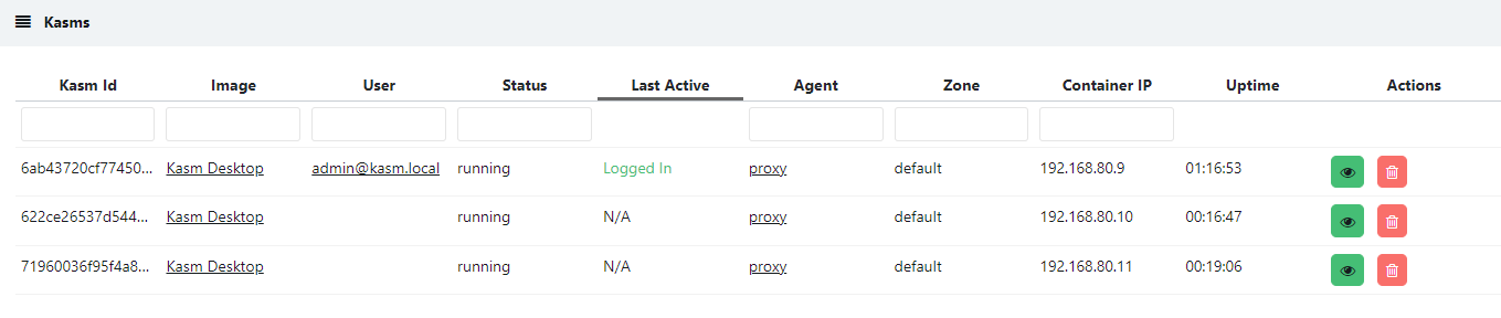 By default, when users create a new Kasm session, the container for that session is created on-demand.