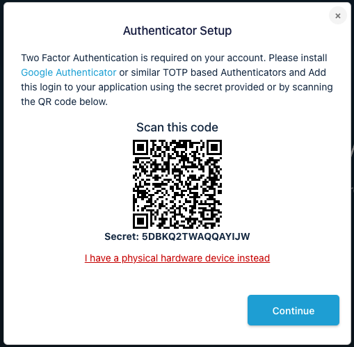 Kasm Workspaces supports using physical tokens that meet the TOTP specification defined in RFC 6238. The tokens must use a 30 second token interval and use SHA1. Physical tokens purchased must come with a seed file, which is a password encrypted zip file containing a list of serial numbers with the associated base32 secret for each token.