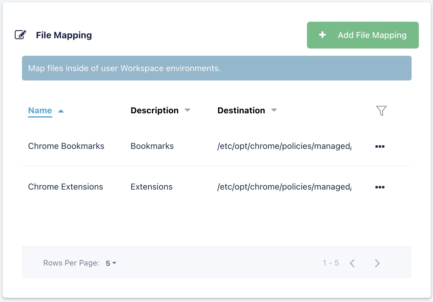 File Mappings allow the administrator to manage files to be mapped to the inside of a user’s container based Workspace session. File Mappings can be defined on a User, Group, and/or Workspace. See the primary documentation on File mappings for more details.