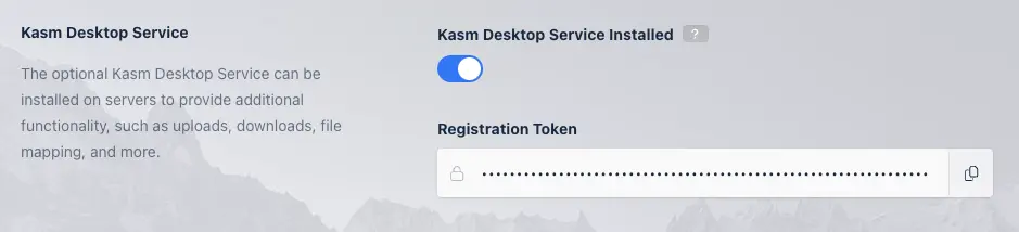 Provide the registration token for this server. In the Kasm Admin UI, Navigate to Infrastructure->Servers, find the target server and click Edit. In the Kasm Agent section, press the copy button on the Registration Token field and paste this into the Kasm Desktop Service installer Registration Token field.