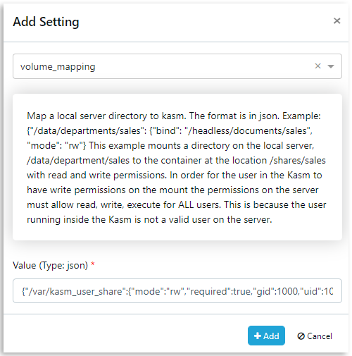 Configuring Volume Mappings on the Kasm Workspace