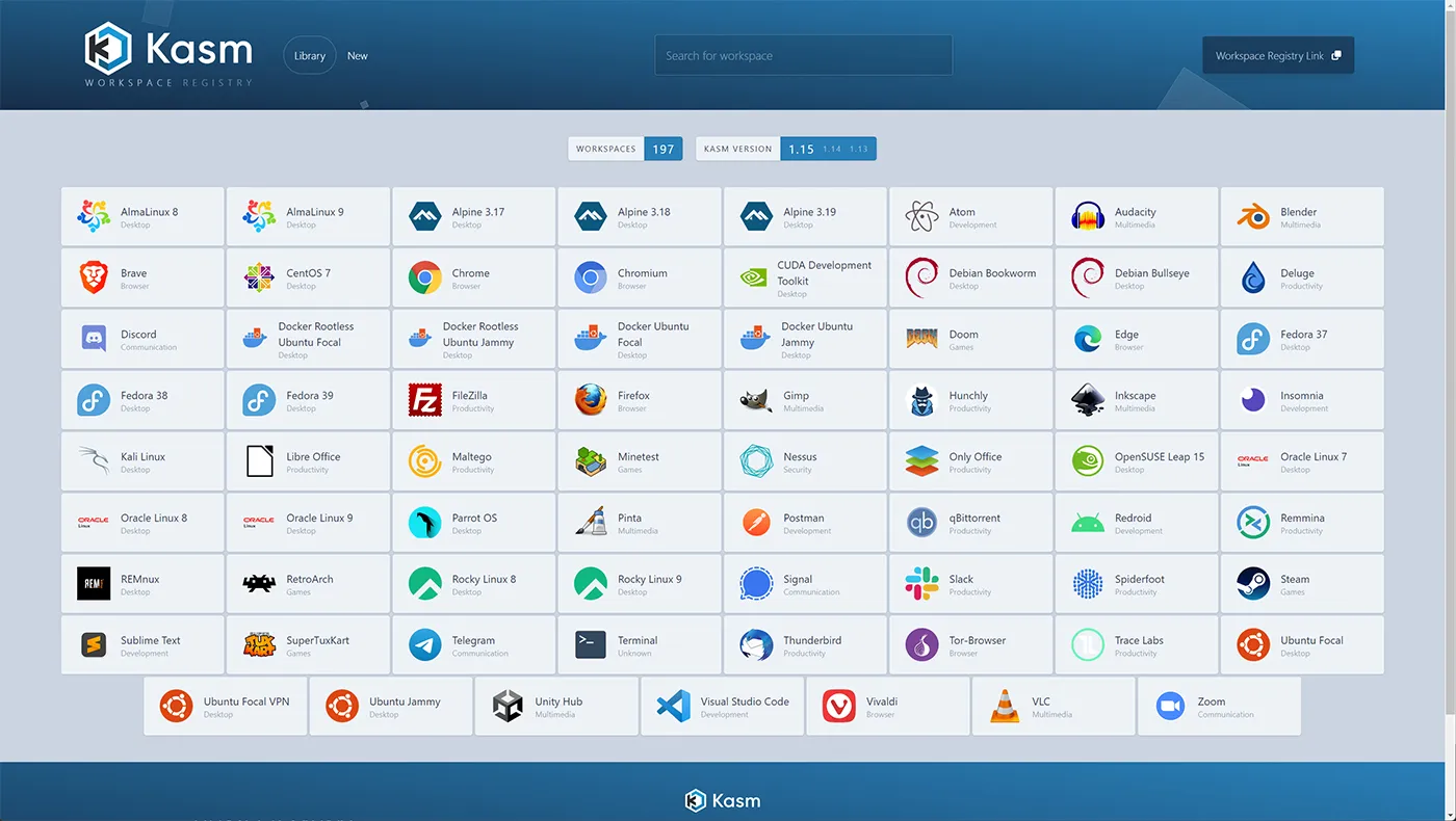 Kasm maintains two versions of each app image, a static versioned release and a rolling image that is rebuilt nightly. Choose the nightly build to ensure the highest level of security.