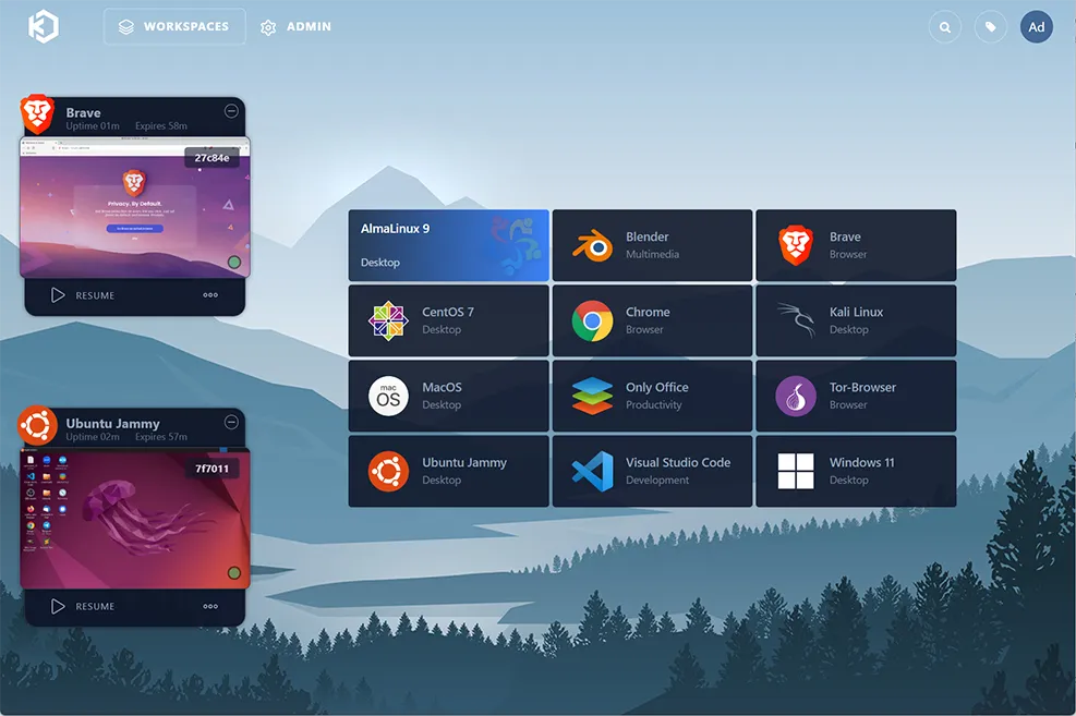 Kasm Cloud Personal provides individuals with secure cloud workspaces from any device, in any location.