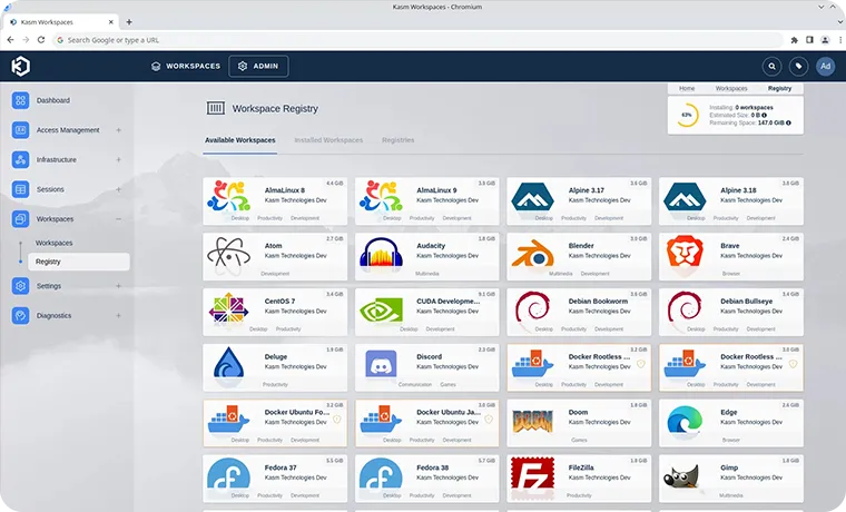 Kasm Workspaces is easily integrated into any DevOps environment. Automate builds, updates, vulnerability scanning, reviews, and more to ensure the security of your platform.